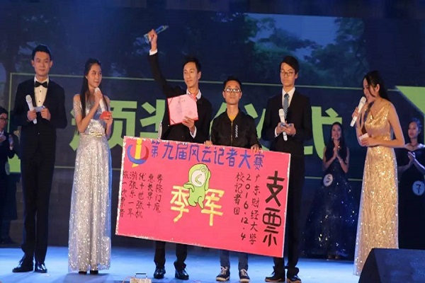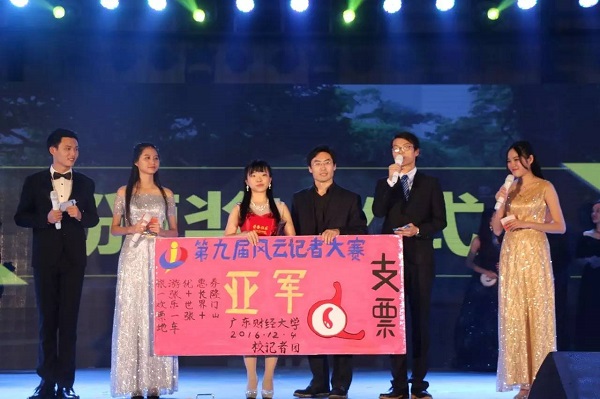 经过一晚上的激烈角逐,8号选手蔡影雪获得最佳人气奖,2号选手张馨获得冠军,而我院6号选手黄宗鑫获得了季军,3号选手王君竹则夺得亚军!人文与传播学院柯佳佳老师和党政办宋信强老师分别为季军和亚军选手进行了颁奖。