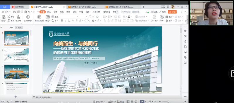 广东财经大学人文与传播学院、网络传播学院(合署)硕导王燕子副教授在“向美而生,与美同行”讲座中,强调了文化自觉与文化自信,她表示中华文化是我们的精神源泉,具有独特性,我们要大力发扬中国精神,讲好中国故事。最后,她也探讨了后现代语境下审美贫困产生的主要原因以及导致的现象,创造性地提出了相应的解决方案,具有很高的学术参考意义。