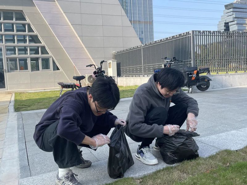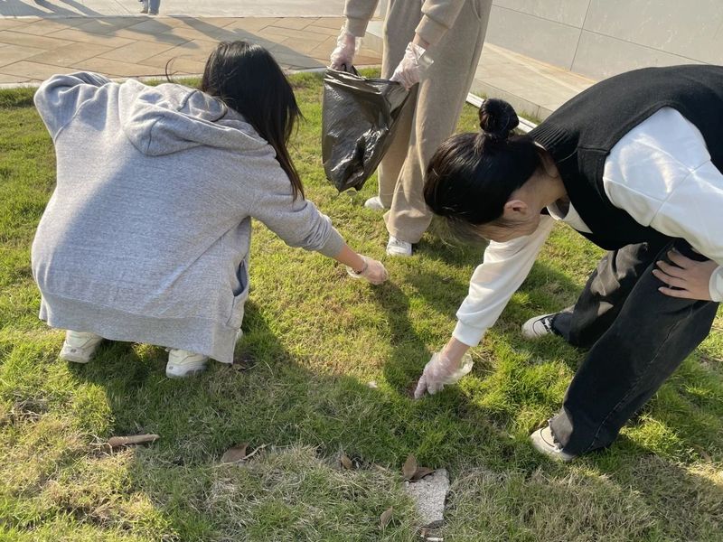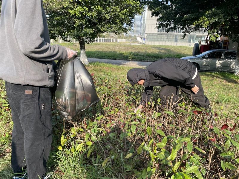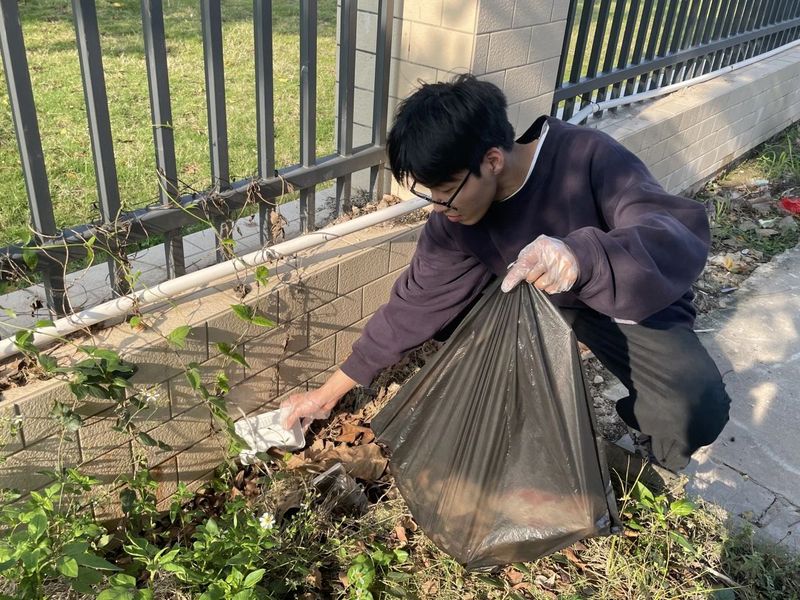 活动伊始,支部同志们齐聚同德楼前,穿戴好手套并手持垃圾袋,前往指定的清洁区域。他们的身影在北校区的草坪旁、校道上等地方忙碌着,将看到的垃圾全部拾起。他们不怕脏、不怕累,脸上始终洋溢着满足和快乐的笑容。