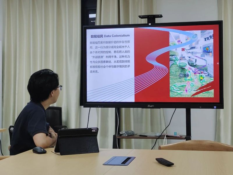 活动伊始,来自新传专业的刘曦柯同学以《The Cost of Connection》一书为引,通过“你被无限连接的代价是什么?”以及“数据本身有什么价值?”这两个深刻问题,引发同学们对于个体与数字化社会之间复杂关系的讨论。刘同学从宏观到微观的角度,讨论社会个体与数字殖民的矛盾关系。数据殖民指数据价值的外部挪用,超越个体控制,旨在榨取人类外部资源。从宏观层面看,这是数字化深度表现,连接成为生活基本存在,但连接背后的监视也逐渐自然化。