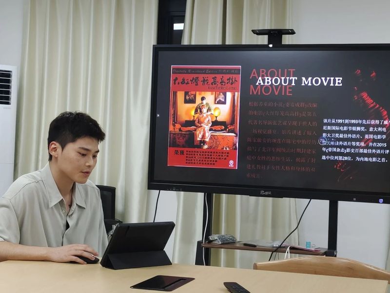出版专业的刘书豪同学为我们带来了对张艺谋导演的《大红灯笼高高挂》的影视鉴赏,刘同学重点从视觉语言的构建分析了这部影片的情感表达。色彩方面,整部影片大多是青灰色的冷色调,营造出一种旧时传统社会的封闭压抑之感,而与之形成鲜明对比的大红灯笼“挂在”画面中间,贯穿整部电影,给人强烈的视觉冲击,也奠定了影片的情感基调。除了大范围运用红色与黑色,影片也运用了少许的白色、暖橘色、绿色、紫色等,这些色彩均推动了故事情节的发展,营造了影片的情感氛围。