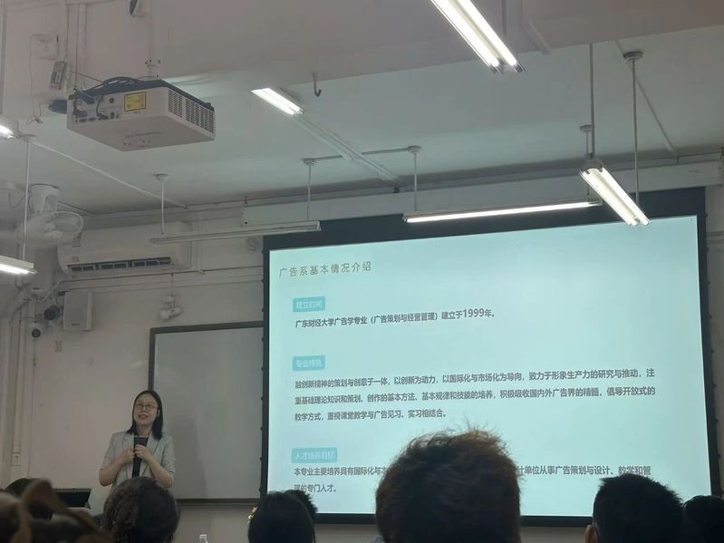初秋启新,遇见正好。为帮助广告系新生快速融入专业大家庭,明确学习方向,9月10日,人文与传播学院(网络传播学院、出版学院)广告系新生与冯婷系主任(暨25广告学1班班主任)、王楠副系主任(暨25广告学2班班主任)的见面会在教学楼顺利开展。冯婷主任、王楠副主任及全体广告系新生齐聚一堂,开启了一场关于专业、成长与未来的深度对话。