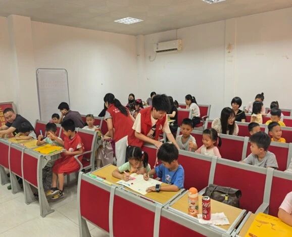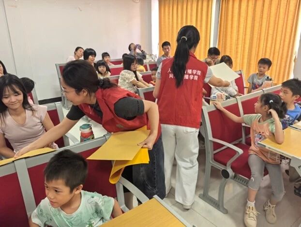 活动当天,广东财经大学人文与传播学院(网络传播学院、出版学院)的大学生志愿者们早早守候在门口,以热情的微笑迎接亲子家庭的到来。在签到环节,孩子们或认真填写信息,或与同伴聊天嬉戏,稚嫩的欢笑声在党群服务中心的大厅里回荡,瞬间点燃了活动的温馨氛围。