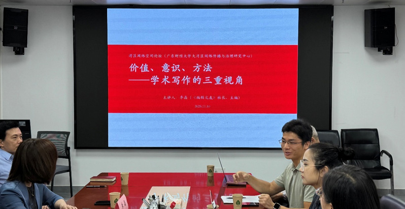 11月10日上午,应广东财经大学大湾区网络传播与治理研究中心邀请,《编辑之友》社长、主编李晶莅临研究中心,作题为“价值、意识、方法——学术写作的三重视角”的专题讲座。