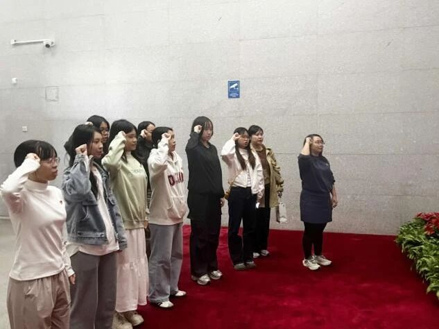 参观尾声,全体师生面向鲜红党旗,在宣誓墙前整齐列队、高擎右拳,庄严重温入党誓词。铮铮誓言铿锵有力,响彻场馆,既是对入党初心的深情回望,更是对传承革命精神、践行时代使命的郑重承诺,让每一位同志在重温誓词中接受深刻的思想淬炼,进一步坚定理想信念。